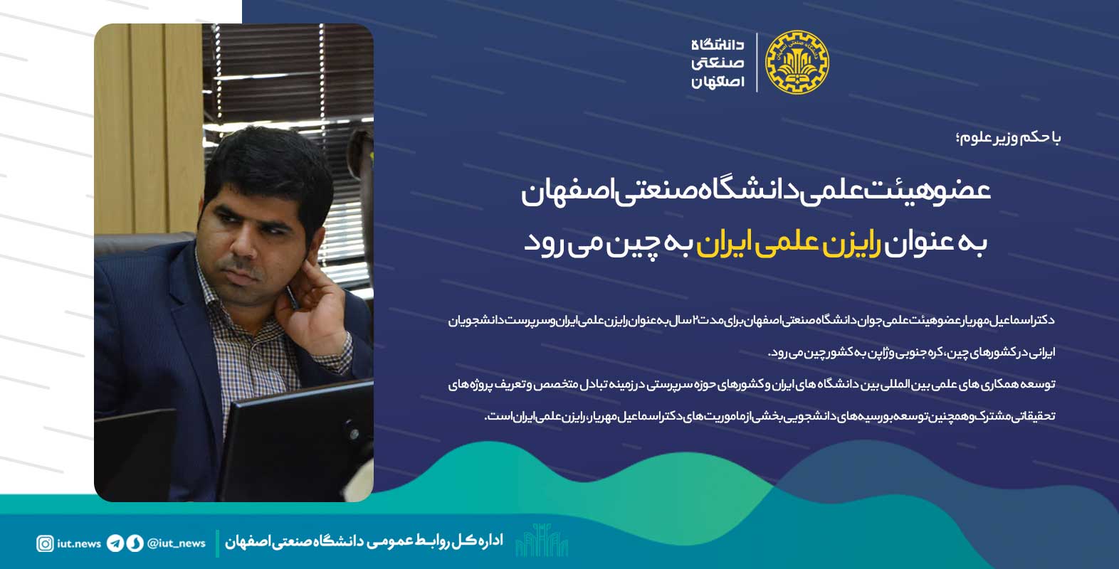 عضو هیئت علمی دانشگاه صنعتی اصفهان به عنوان رایزن علمی ایران به چین می رود
