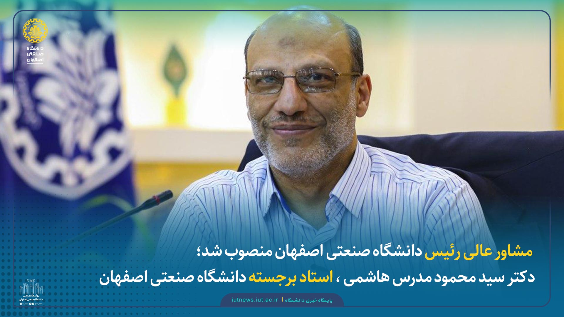 مشاور عالی رئیس دانشگاه صنعتی اصفهان منصوب شد؛دکتر سید محمود مدرس هاشمی