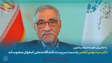 با حکم وزیر علوم، تحقیقات و فناوری؛ دکتر سید مهدی ابطحی به سمت سرپرست دانشگاه صنعتی اصفهان منصوب شد