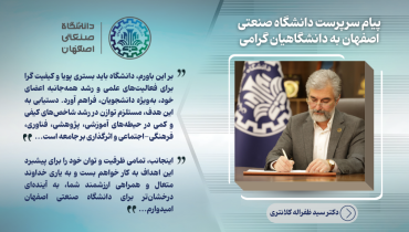 پيام سرپرست دانشگاه صنعتي اصفهان به مناسبت 16 آذر، روز دانشجو