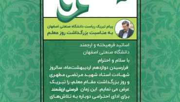پیام رئیس دانشگاه صنعتی اصفهان به مناسبت روز بزرگداشت مقام شامخ معلم