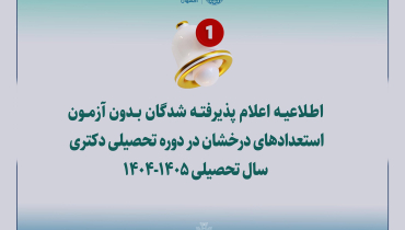 اسامي پذیرفته شدگان بدون آزمون مقطع دكتري سال تحصیلی۱۴۰۵-۱۴۰۴ دانشگاه صنعتی اصفهان